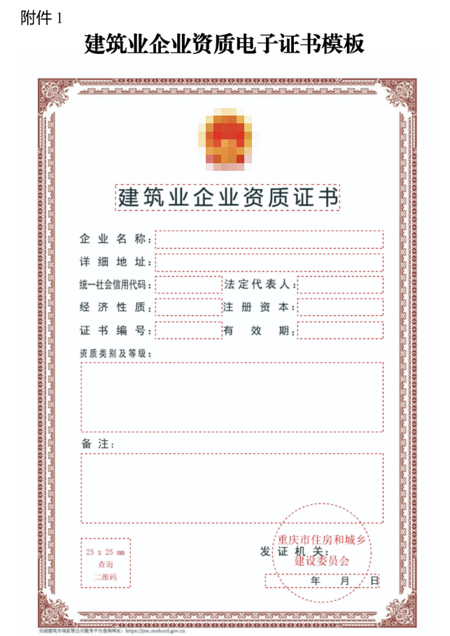 重慶市住建委發布《關于推行建筑業企業資質證書電子證照的通知》,明確:自2025年9月1日起,對全市范圍內申請建筑業企業資質行政許可及施工勞務資質備案事項并獲審批通過的企業,統一核發電子證照,不再制發紙質資質證書。